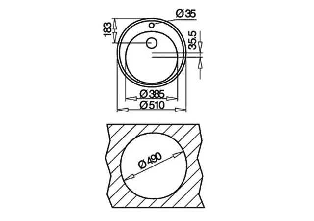 - Overall: Ø 510; Bowl (w x h x d), Ø 385 mm x 180 mm