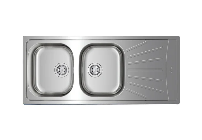 - Stainless steel sink, Two bowls and one drainer